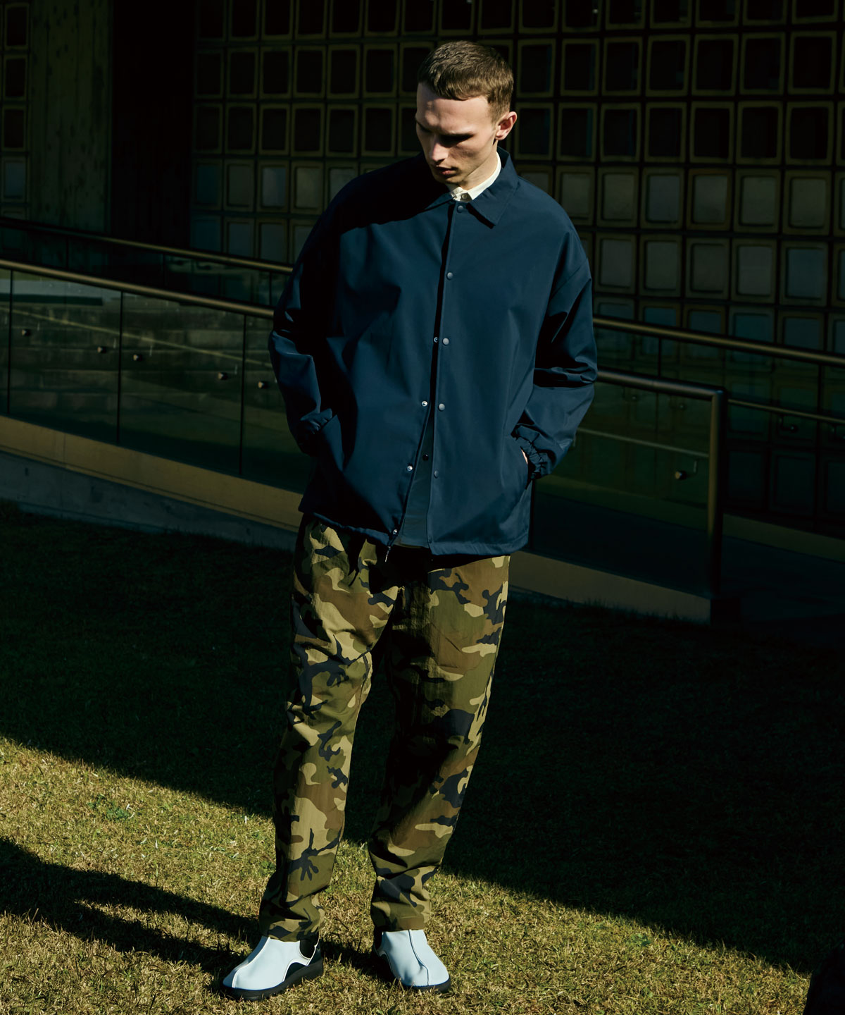 「ありそうでなかった」綿100%のコーチジャケットも注目されています。着心地が非常に良く、洗濯を繰り返すほどに風合いが増していくという、デニムのような「育てる」楽しみがあります。ライトアウターとして気軽に羽織ることができ、裾のドローコードでシルエットの変化も楽しめま。